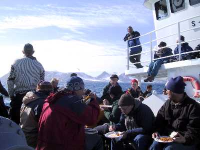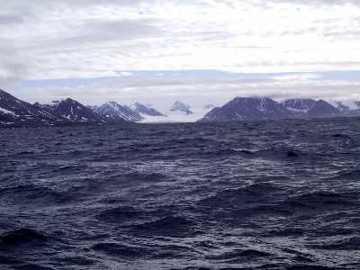 Kaum hat unser Schiff abgelegt, ertönt der aufgeregte Ruf: "whales!!!" Es ist mir vergönnt, einen majestätisch durch das Wasser gleitenden Beluga zu sehen, der Anblick ist so ergreifend, dass ich nicht einmal fotografieren will. Die 9 stündige Rückreise nach Longyearbyen verbringen wir trotz eiskaltem Wind hauptsächlich an Deck, da die Wolkendecke komplett aufreißt und die Sonne auf die wilde arktische See herunterbrennt.