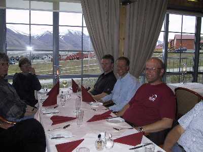 Wir kommen Abends in Longyearbyen an und dürfen noch ein letztes Dinner mit Aussicht auf schneebedeckte Berge genießen. Spätestens jetzt, da die Abreise unmittelbar bevorsteht, macht sich etwas Wehmut bemerkbar, aber die Vorfreude auf den "echten" Sommer (in Wien soll es 30 Grad haben) wird auch größer.